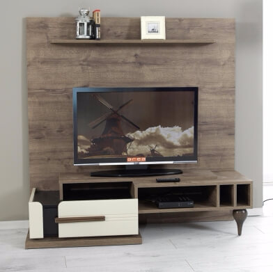 Dış bölümleri , MDF üzeri ceviz kaplama ve lake boyalıdır.